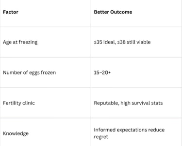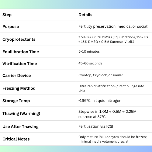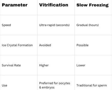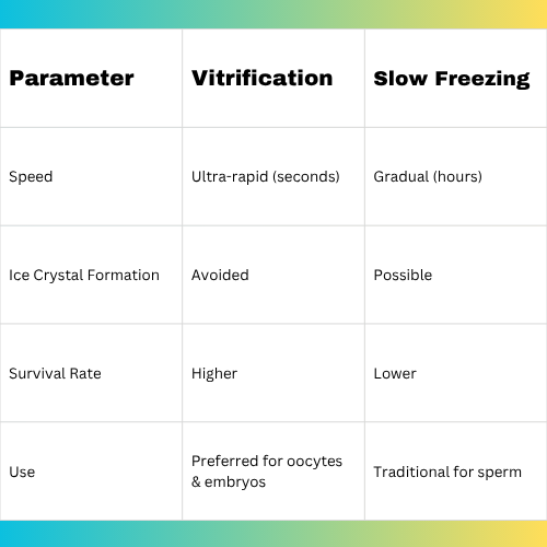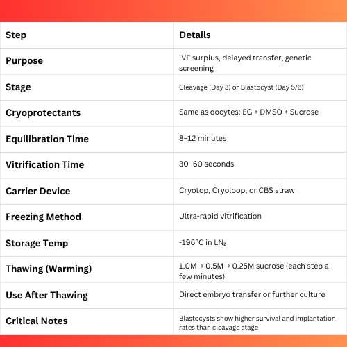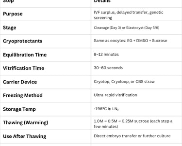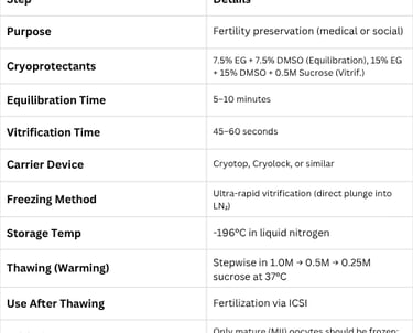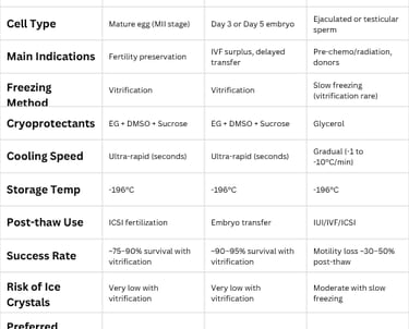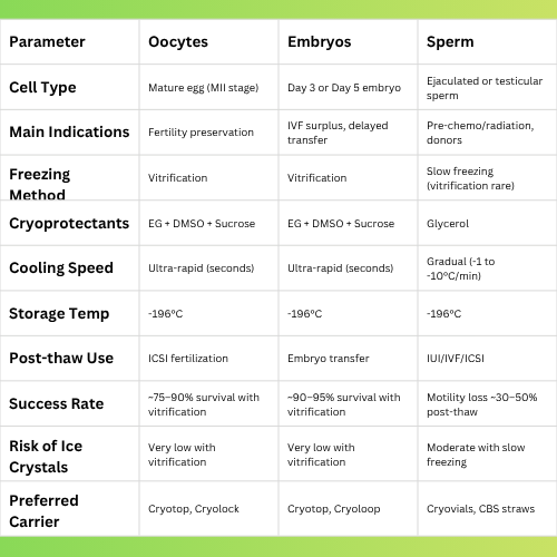 COMPARISON TABLE – Cryopreservation of Oocyte vs Embryo vs Sperm