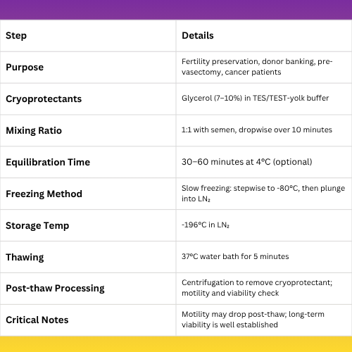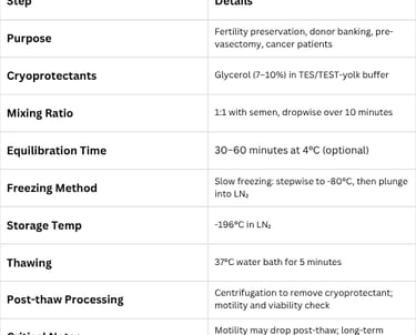 SPERM CRYOPRESERVATION – Slow Freezing Protocol Table